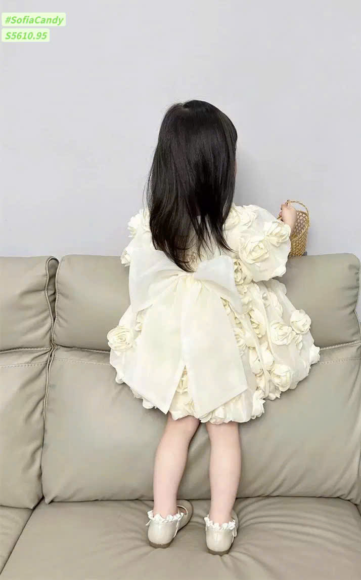 Đầm xoè bồng kem hoa hồng 12-40kg