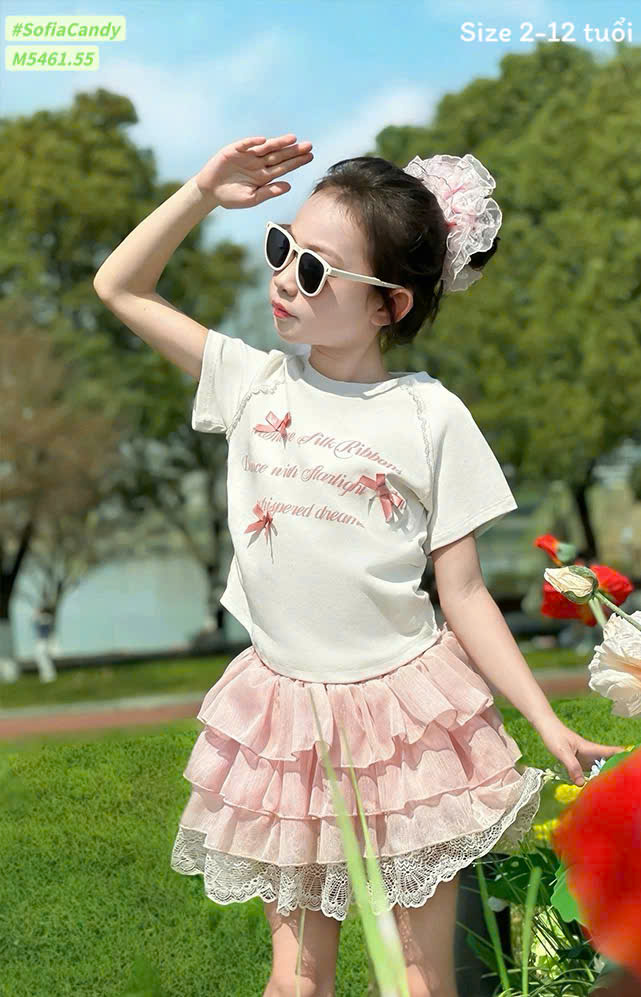 Set nơ áo trắng váy hồng (5461) 12-40kg